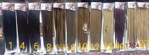 Dark black 1, Black 4, Dark Brown6, Hazel Brown 8, Medium Brown Highlight 8 27, Caramel Brown, Light Brown10, Dark Blonde 12, Light Blonde 15, Dark Burgundy 99, Light Blonde Highlight 12 24 |