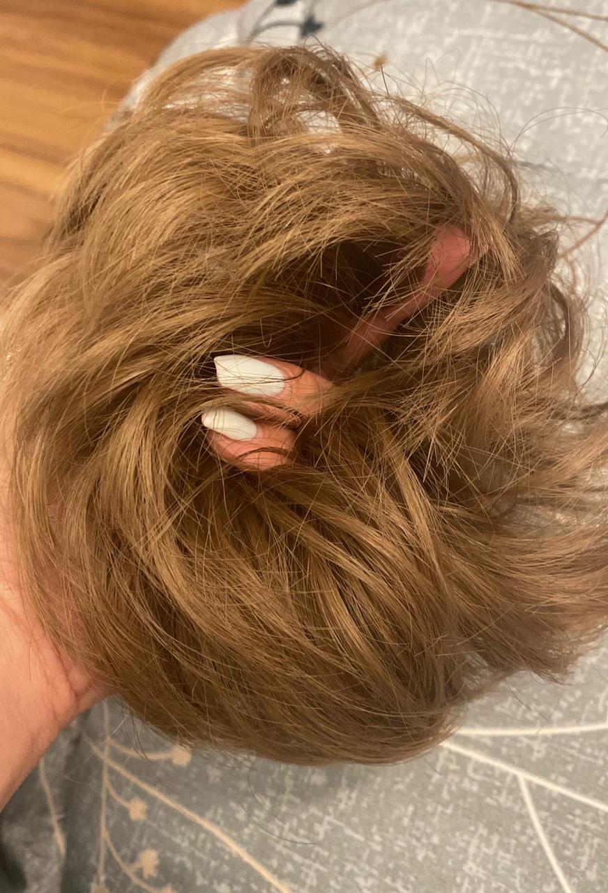 A Messy hair bun that looks natural It gives you volume and length for your hair; made from high-quality material, its texture and appearance are very natural, as if you are wearing your real hair exactly.